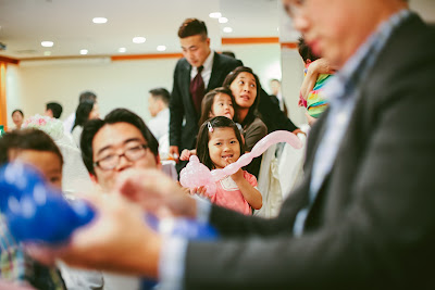After running through the main points of the ceremony twice, we met with our extended families and close friends for a Korean dinner at Dae Dong Manor in Flushing, Queens. The tables were decorated with pretty table linens and beautiful flowers, there was a lot of good food, and my friend Brian brought some balloons to entertain the kids with his impressive creations.