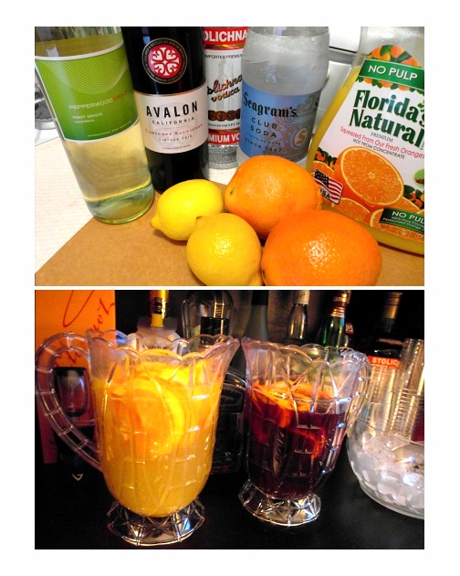 Our grapetinis were made with white grape juice, vodka, and St.-Germain -- I don't remember how many parts of each, but I wouldn't mind recreating them to let you know -- and garnished with frozen red grapes. We don't have real martini glasses because I want everything we own to serve at least 2 purposes, so the plastic ones reach all the way down to the base, which is why the grapes are sitting so low.